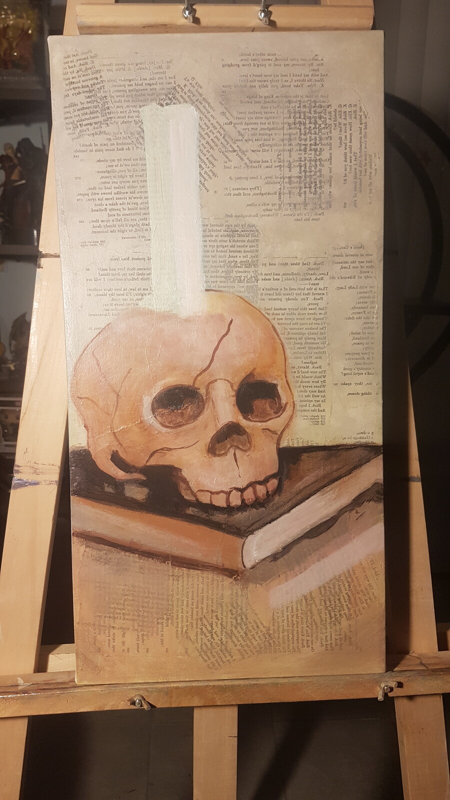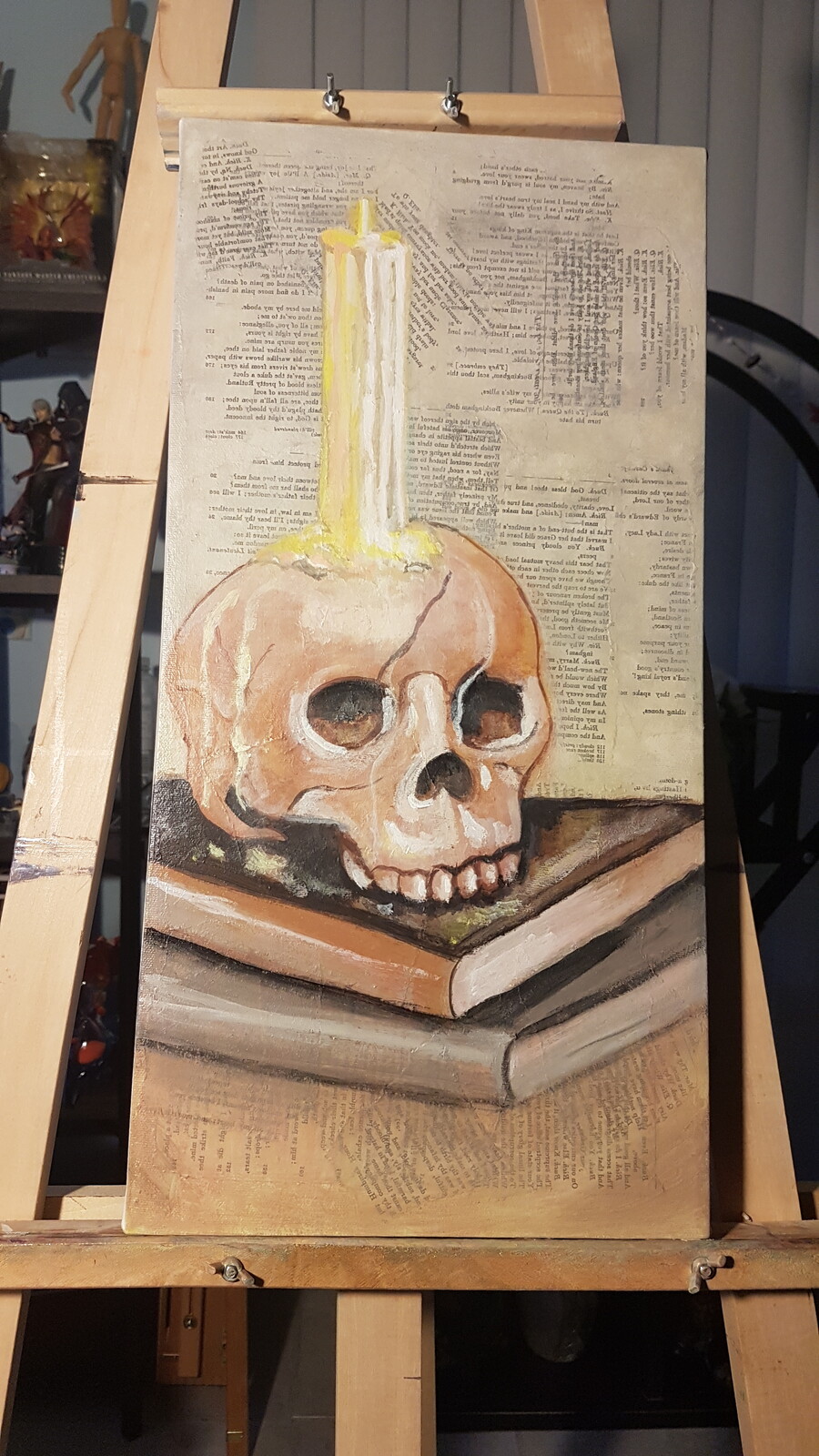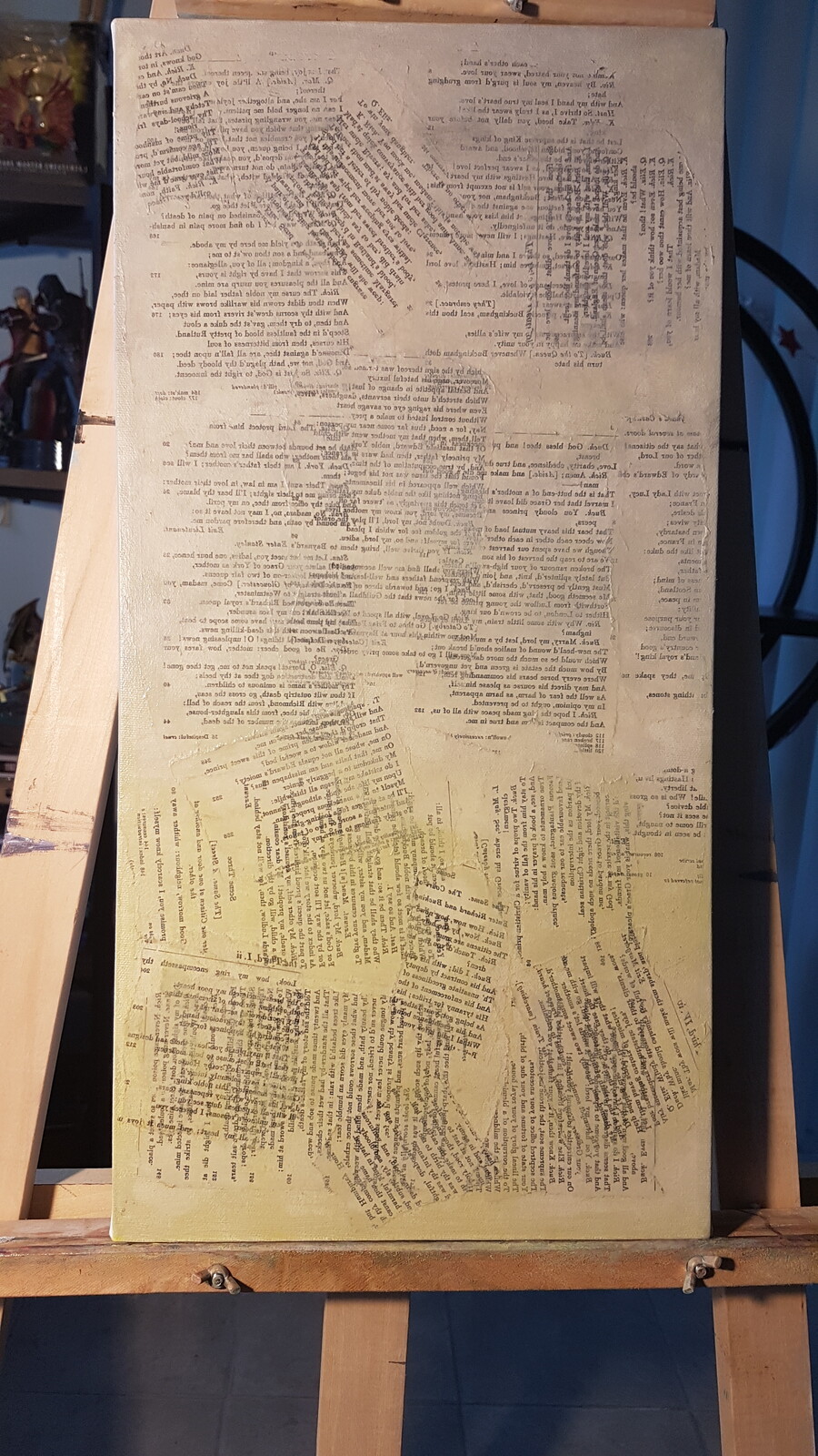 An acrylic painting on canvas using transferred art for the background.